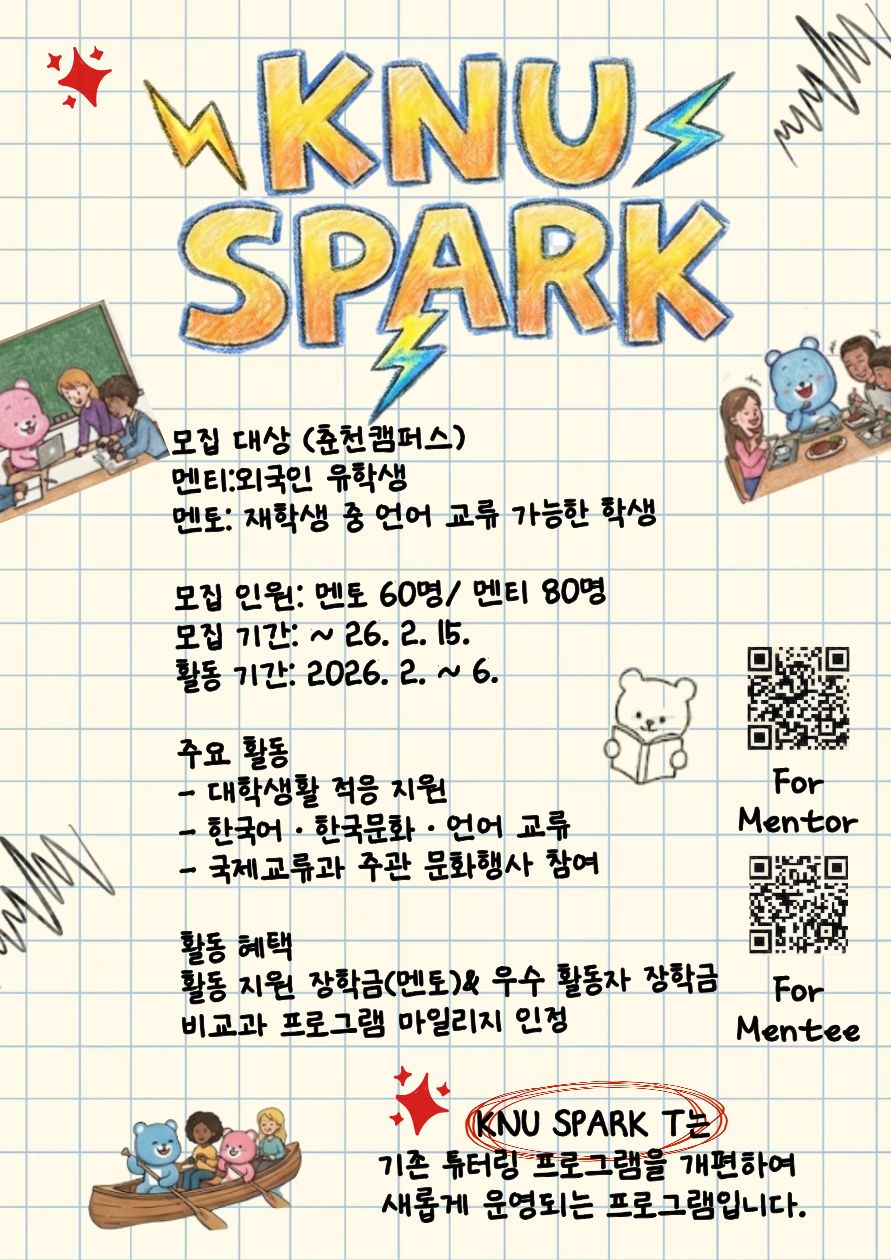 [공지] 2026년 1학기 멘토링 프로그램(KNU SPARK T) 모집 안내 및 홍보 요청